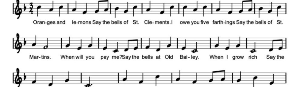 For more info on the rhyme, start at: [https://en.wikipedia.org/wiki/Oranges_and_Lemons]